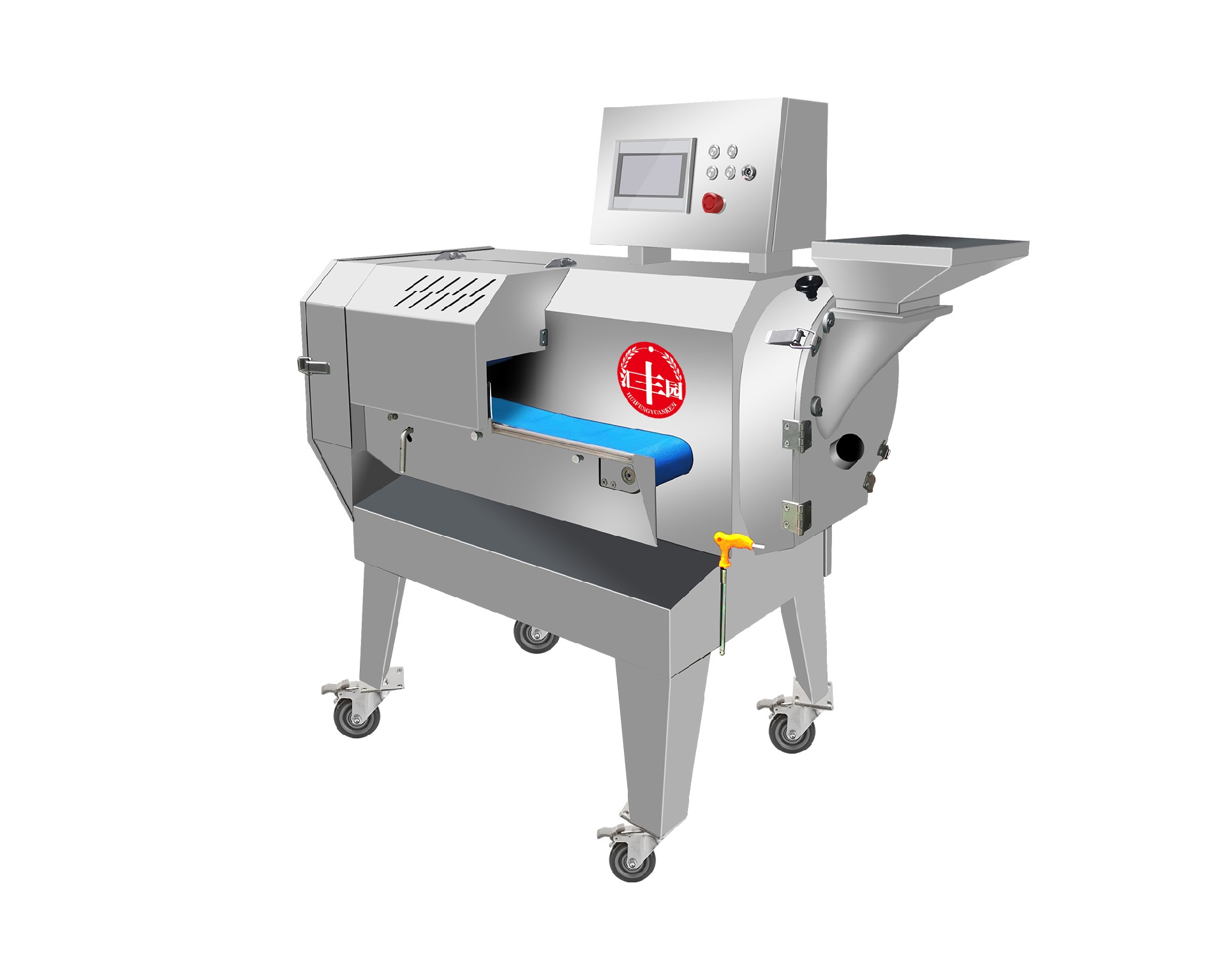 本設(shè)備幾乎可切任何瓜果蔬菜,如:切片、絲、丁,末、段等;具備雙調(diào)頻功能,一頭是切葉菜類,如長蔥,蒜苗,韭菜,芹菜,白菜, 青菜等等,一頭是切球根莖類,如蘿卜,土豆,紅薯,芋頭,筍,洋蔥,茄子,蘋果,生姜等等眾多瓜果類蔬菜。葉菜類的輸送帶速度和 轉(zhuǎn)刀速度采用PLC數(shù)控屏操作,均可獨(dú)立控制,葉菜切割規(guī)格:1~50mm可調(diào)。切部份根莖類;根徑部份刀盤范圍:片:2-10MM,絲: 2-6MM,丁:8MM、10MM、12MM、15MM、20MM選一;一機(jī)多用,功能強(qiáng)大,產(chǎn)量高,操作簡單,皮帶可快速拆卸,并可水槍沖洗, 清洗方便。 | |